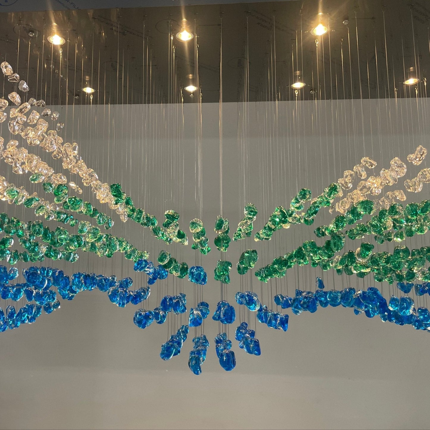 Featuring multicolor stones crafted with superior quality and precision, this crystal stone chandelier is the perfect way to add elegance and sophistication to any space. The intricate design sparkles when lit, illuminating any room with its shimmering beauty. Handcrafted with multiple processes, this chandelier is the epitome of exquisite design.