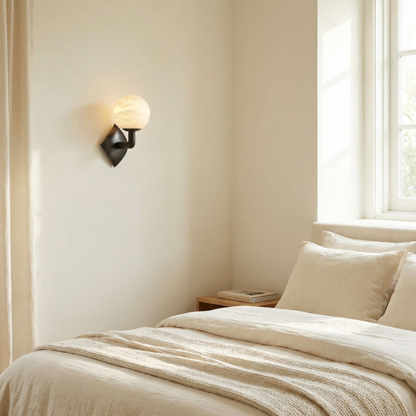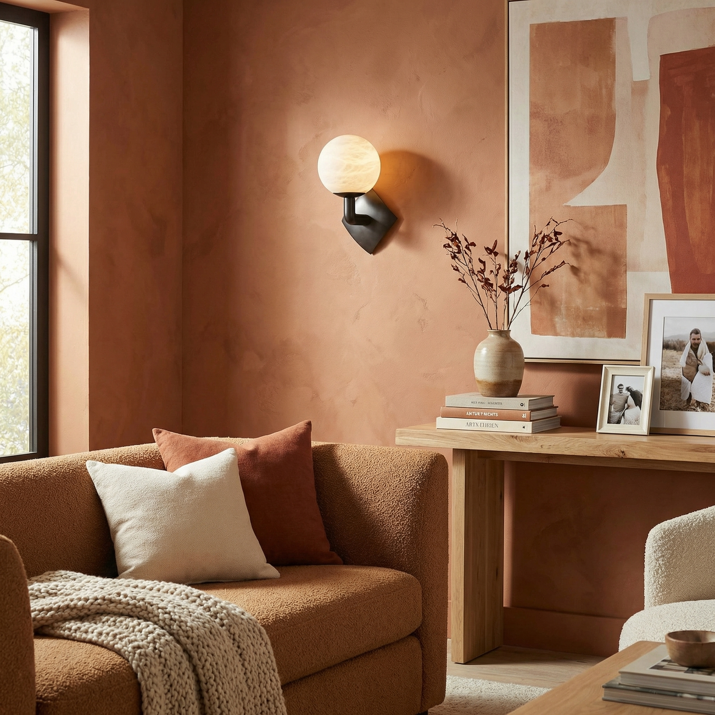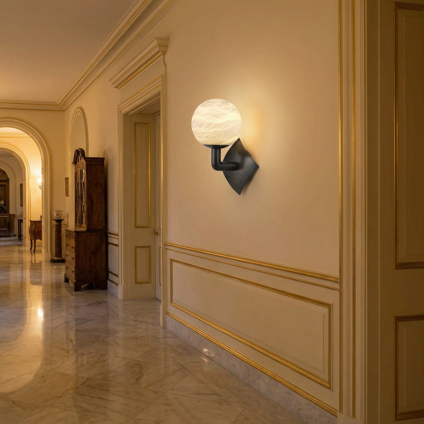 Part of the Sculpted Form Collection, this sculptural wall sconce treats light like a fine art object — hand-shaped alabaster forms paired with architectural metalwork, turning every wall into a gallery of warm, glowing stone.