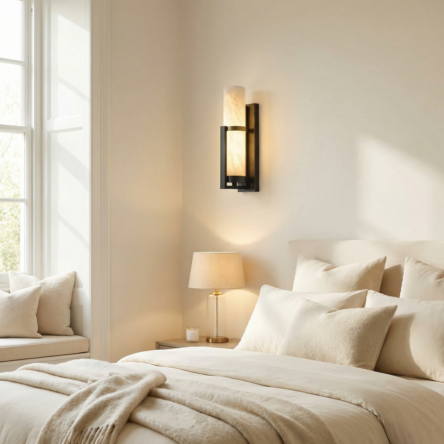 Sculpted Form Cylinder in Frame Alabaster Wall Sconce
