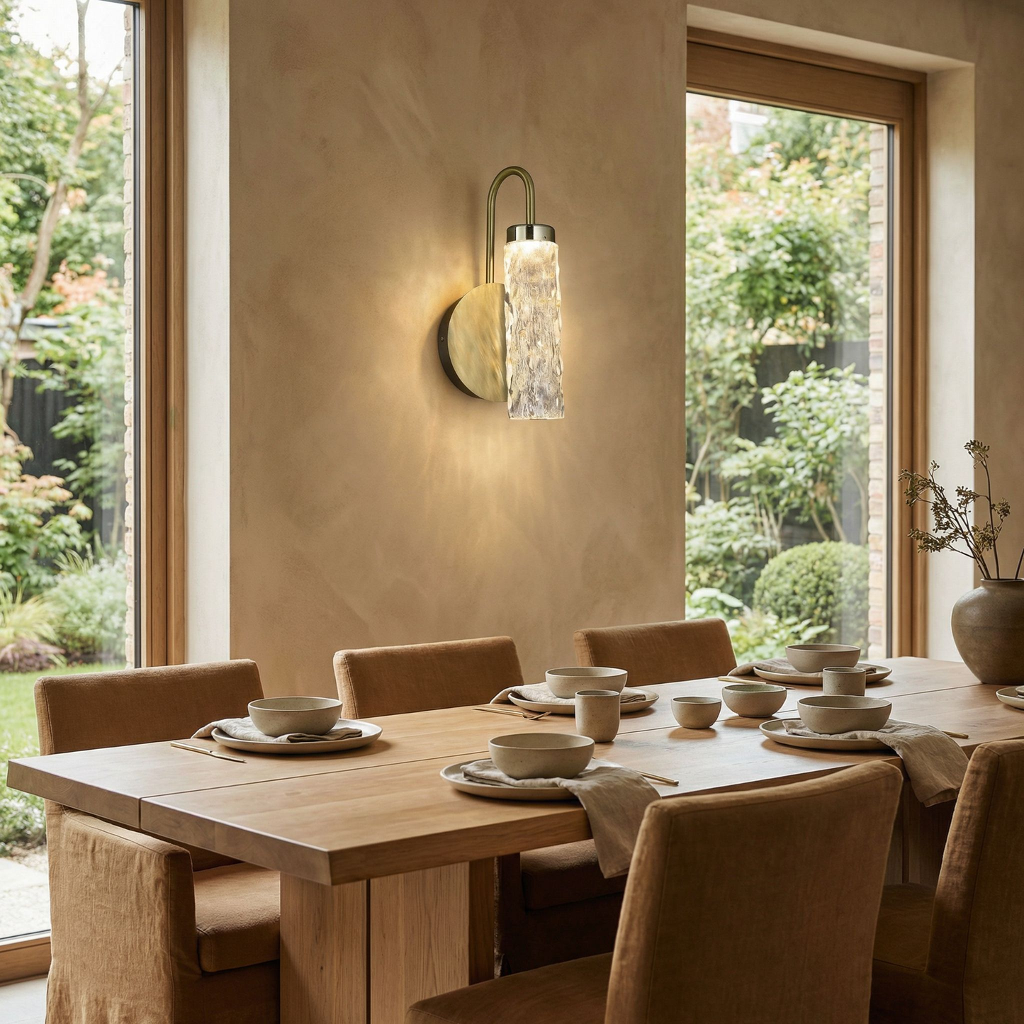 A wall sconce with single bamboo joint-shaped natural stone column. Creates directional accent lighting with oriental zen appeal.