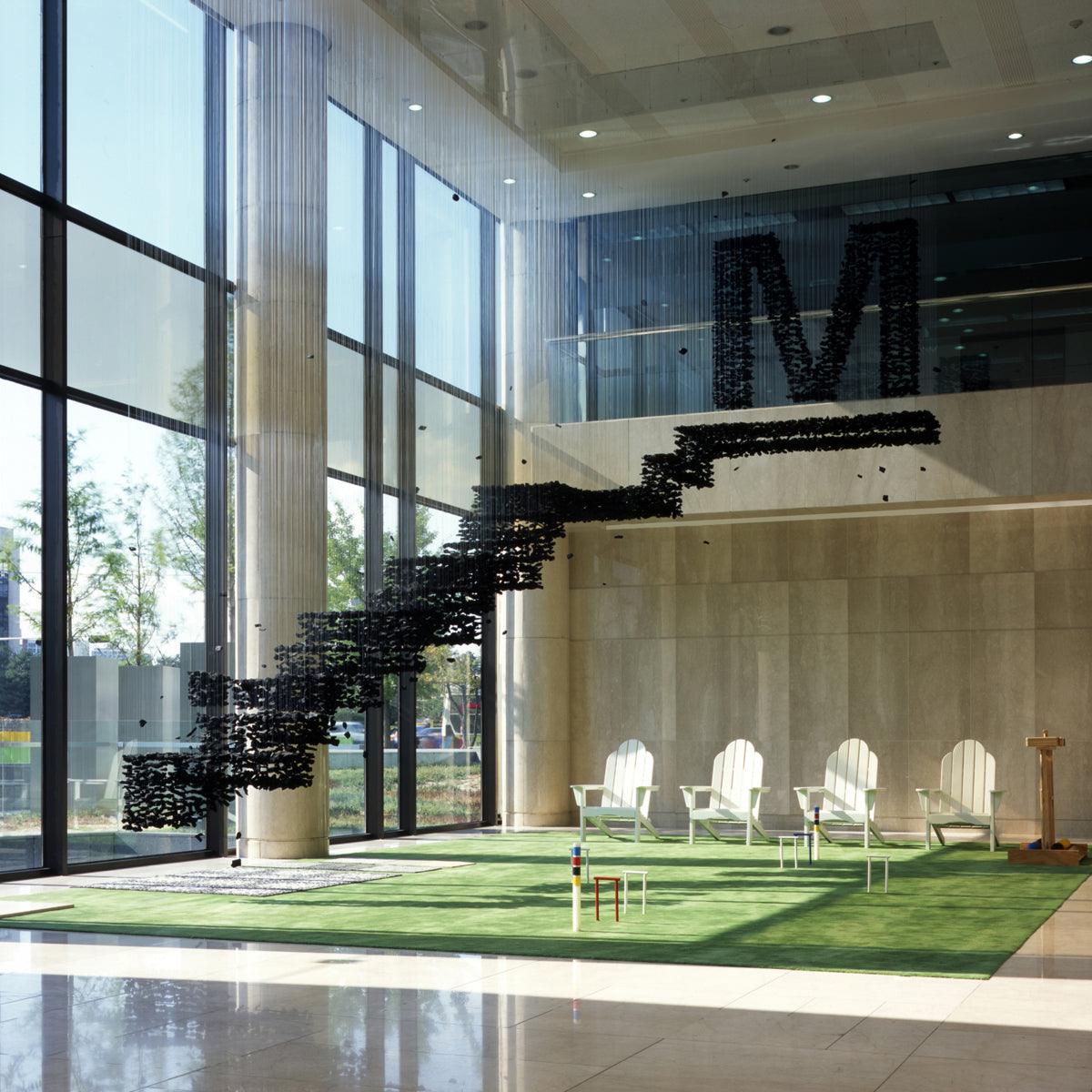 What begins with a single lump of charcoal extends into a line and then expands to fill a space. The design artist uses charcoal, with its dualistic connotations of creation and destruction, to suggest that everything in the world is connected and that the entire universe is contained within a single point. The implications are simple and clear.