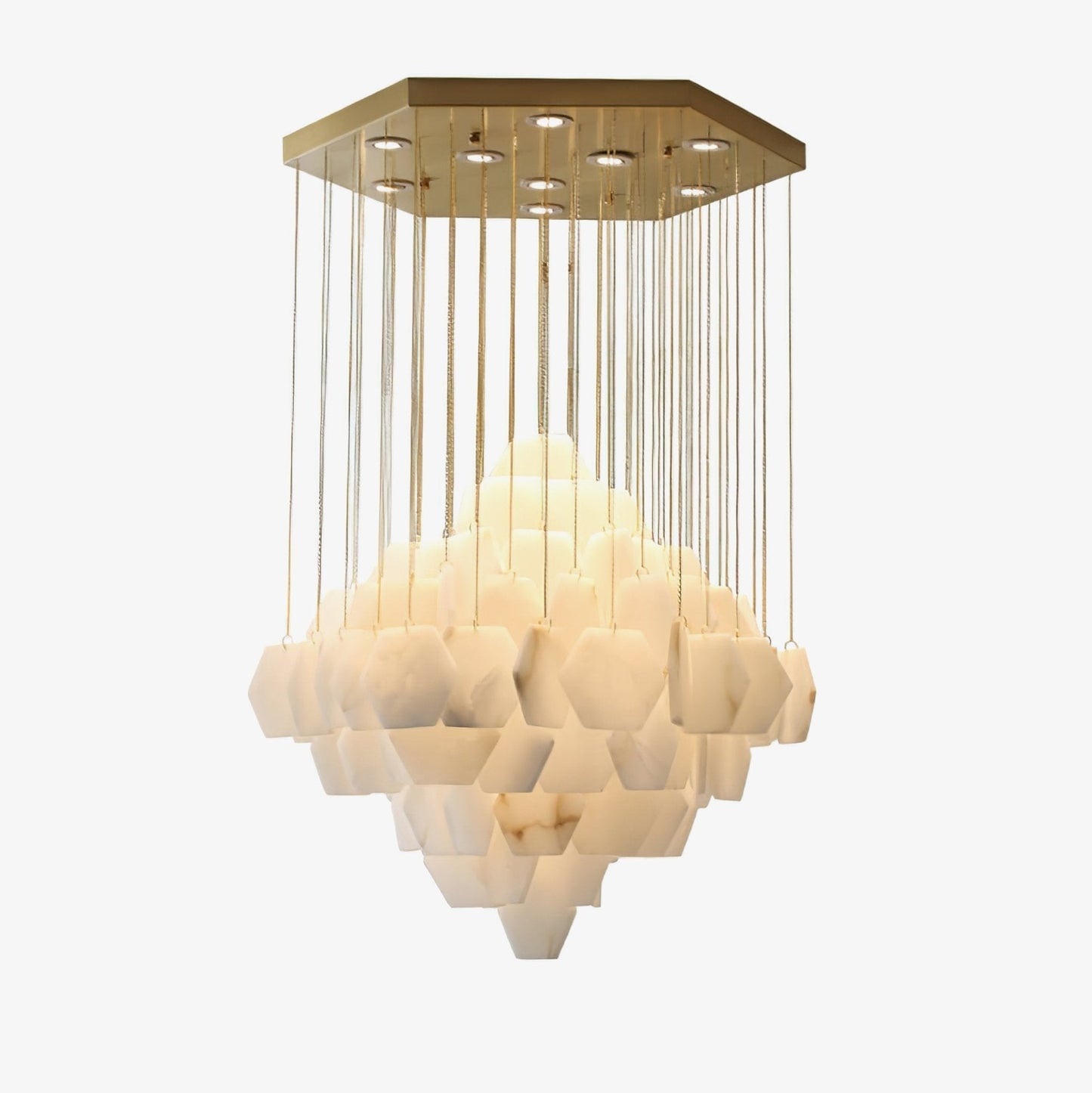 Hexa Alabaster Cascade Chandelier – Gold & White LED Luxury Light