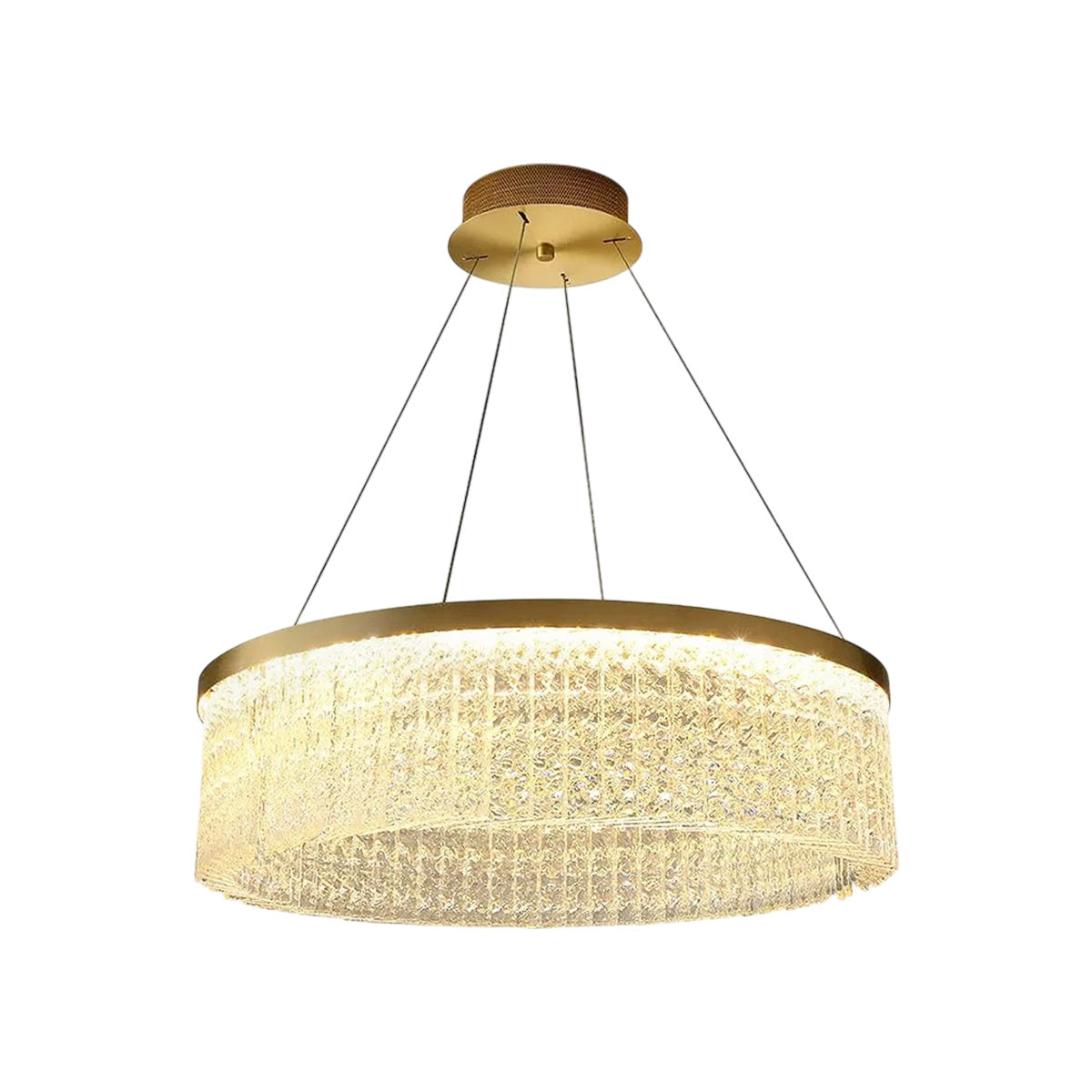 Add a modern touch with this round halo crystal chandelier, featuring a copper-finished stainless steel frame and sparkling clear crystals. The integrated LED offers adjustable warm, neutral, or cool light, making it perfect for any space.