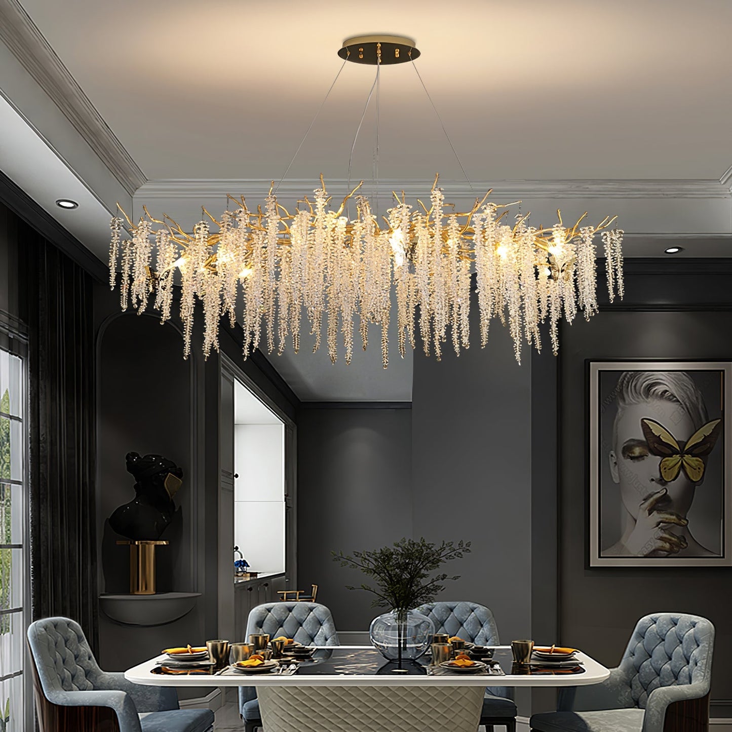 Turn any room into a sparkling garden with the Wisteria Flower Crystal Chandelier, where golden arms cradle cascading crystal blossoms. Its clear crystal shades and golden frame create a dazzling glow that feels both elegant and enchanting.